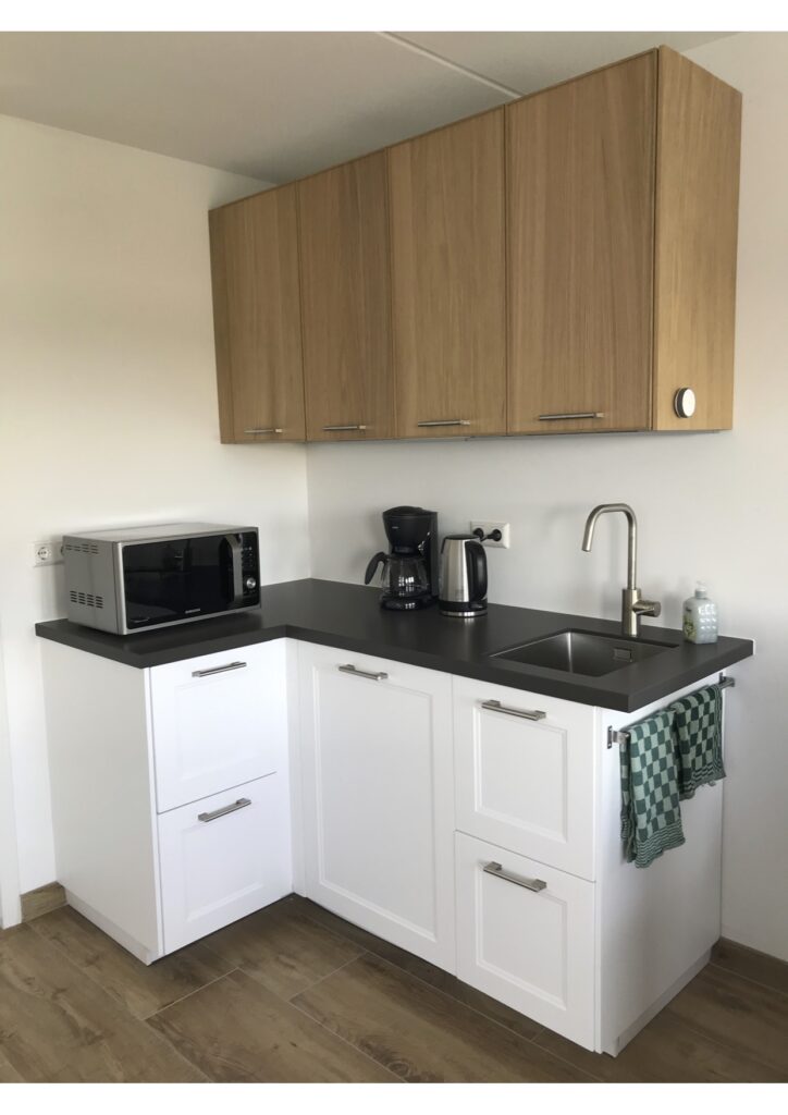 Onze accommodatie is uitgerust met moderne faciliteiten, waaronder een open keuken, een moderne badkamer en een comfortabele, verstelbare boxspring voor een aangenaam verblijf.